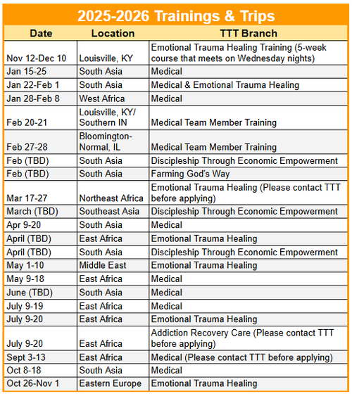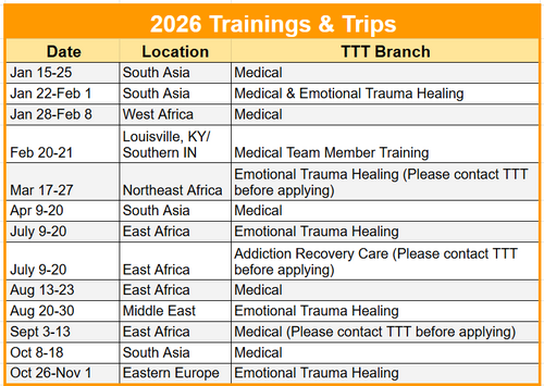 Our U.S.-based trainings are designed to equip and empower our future mission team members. These sessions focus on “training the trainers”—preparing U.S. ambassadors with the tools, knowledge, and confidence they need to join us on international trips.